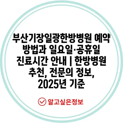 부산기장일광한방병원 예약 방법과 일요일·공휴일 진료시간 공지 | 한방병원 추천, 전연락 정보, 2025년 기준 에 대해 자주 묻는 질문 TOP 5
