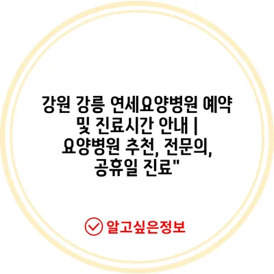 ✅ 강릉 연세요양병원의 진료시간과 예약 방법을 알아보세요.