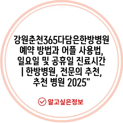 강원춘천365다담은한방병원 예약 방법과 어플 사용법, 일요일 및 공휴일 진료시간 | 한방병원, 전연락 추천, 추천 병원 2025″ 에 대해 자주 묻는 질문 TOP 5