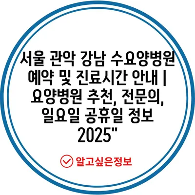 ✅ 서울 관악 강남 수요양병원의 예약 방법과 상세 정보를 알아보세요.