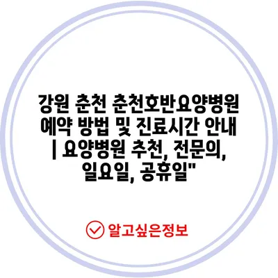 ✅ 춘천호반요양병원의 예약 방법과 진료시간을 자세히 알아보세요.