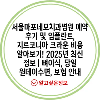 서울마포네모치과병원 예약 후기 및 임플란트, 지르코니아 크라운 비용 알아보기! 2025년 최신 정보 | 뼈이식, 당일 원데이수면, 보험 안내