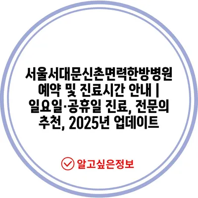 서울서대문신촌면력한방병원 예약 및 진료시간 공지 | 일요일·공휴일 진료, 전연락 추천, 2025년 업데이트 에 대해 자주 묻는 질문 TOP 5