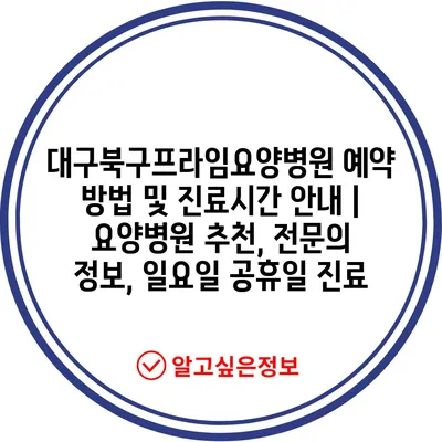 대구북구프라임요양병원 예약 방법 및 진료시간 공지 | 요양병원 추천, 전연락 정보, 일요일 공휴일 진료 에 대해 자주 묻는 질문 TOP 5