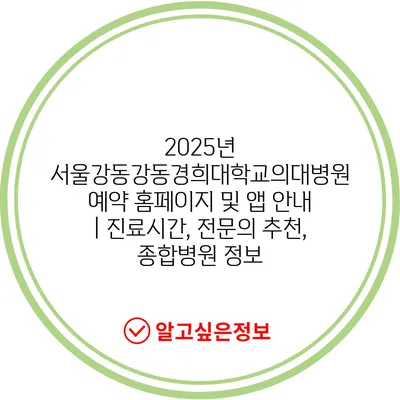 2025년 서울강동강동경희대학교의대병원 예약 홈페이지 및 앱 공지 | 진료시간, 전연락 추천, 종합병원 정보 에 대해 자주 묻는 질문 TOP 5