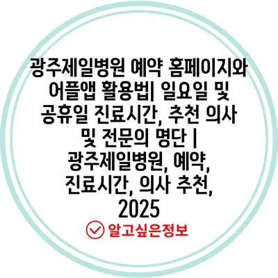 광주제일병원 예약 홈페이지와 어플앱 활용법| 일요일 및 공휴일 진료시간, 추천 의사 및 전문의 명단 | 광주제일병원, 예약, 진료시간, 의사 추천, 2025