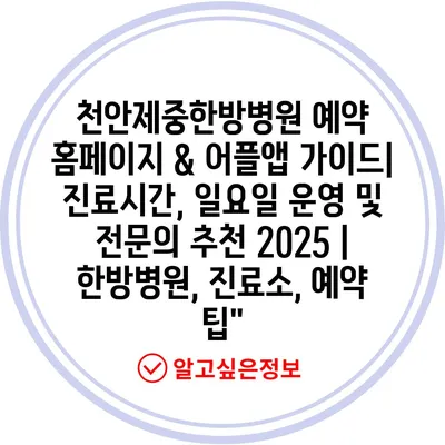 천안제중한방병원 예약 홈페이지 & 어플앱 설명서| 진료시간, 일요일 운영 및 전연락 추천 2025 | 한방병원, 진료소, 예약 팁