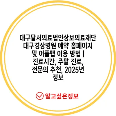 대구달서의료법인상보의료재단 대구경상병원 예약 홈페이지 및 어플앱 이용 방법 | 진료시간, 주말 진료, 전연락 추천, 2025년 정보 에 대해 자주 묻는 질문 TOP 5