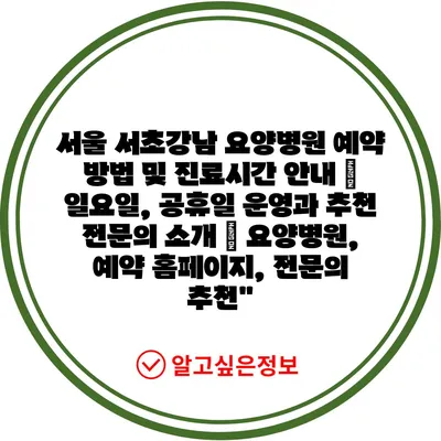 ✅ 서울 서초강남 요양병원의 예약 및 진료시간 정보를 자세히 알아보세요.