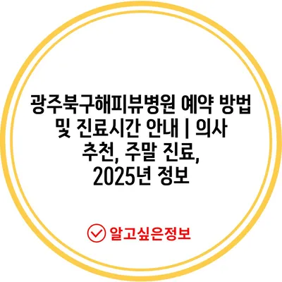 광주북구해피뷰병원 예약 방법 및 진료시간 공지 | 의사 추천, 주말 진료, 2025년 정보 에 대해 자주 묻는 질문 TOP 5