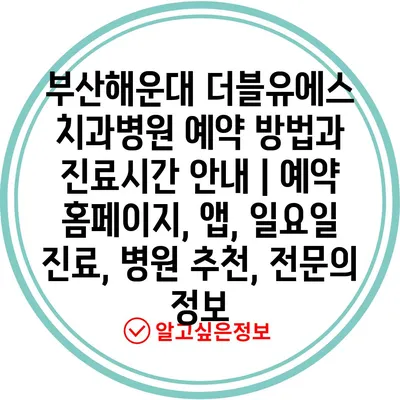 부산해운대 더블유에스 치과병원 예약 방법과 진료시간 안내 | 예약 홈페이지, 앱, 일요일 진료, 병원 추천, 전문의 정보