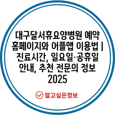 대구달서휴요양병원 예약 홈페이지와 어플앱 이용법 | 진료시간, 일요일·공휴일 공지, 추천 전연락 정보 2025 에 대해 자주 묻는 질문 TOP 5