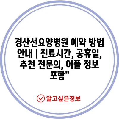 경산선요양병원 예약 방법 안내 | 진료시간, 공휴일, 추천 전문의, 어플 정보 포함”