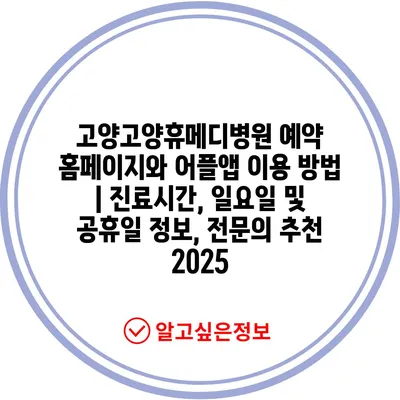 고양고양휴메디병원 예약 홈페이지와 어플앱 이용 방법 | 진료시간, 일요일 및 공휴일 정보, 전문의 추천 2025