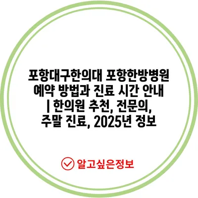 포항대구한의대 포항한방병원 예약 방법과 진료 시간 공지 | 한의원 추천, 전연락, 주말 진료, 2025년 정보 에 대해 자주 묻는 질문 TOP 5