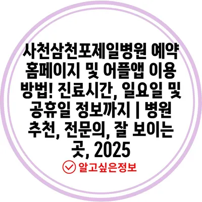 사천삼천포제일병원 예약 홈페이지 및 어플앱 이용 방법! 진료시간, 일요일 및 공휴일 정보까지 | 병원 추천, 전연락, 잘 보이는 곳, 2025에 대해 자주 묻는 질문 TOP 5