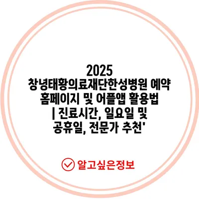 2025 창녕태황의료재단한성병원 예약 홈페이지 및 어플앱 활용법 | 진료시간, 일요일 및 공휴일, 전문가 추천’ 에 대해 자주 묻는 질문 TOP 5
