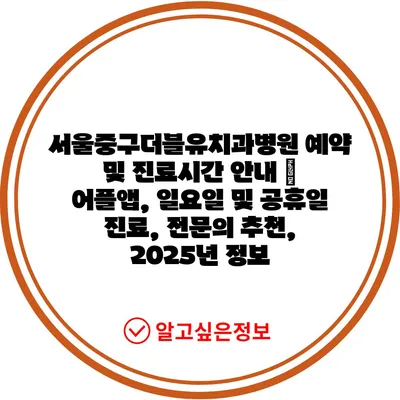 서울중구더블유치과병원 예약 및 진료시간 공지 | 어플앱, 일요일 및 공휴일 진료, 전연락 추천, 2025년 정보에 대해 자주 묻는 질문 TOP 5