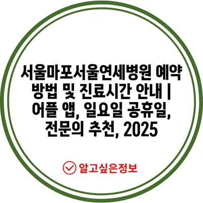 서울마포서울연세병원 예약 방법 및 진료시간 공지 | 어플 앱, 일요일 공휴일, 전연락 추천, 2025 에 대해 자주 묻는 질문 TOP 5