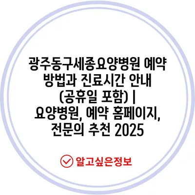 광주동구세종요양병원 예약 방법과 진료시간 공지는 요양병원 이용을 계획하는 분들에게 매우 중요합니다.