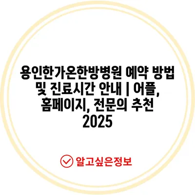 ✅ 2025년 용인한가온한방병원 예약 방법을 지금 바로 알아보세요!