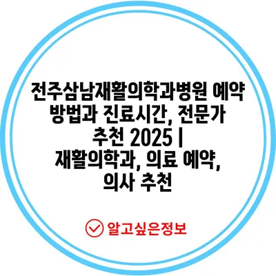 전주삼남재활의학과병원 예약 방법과 진료시간, 전문가 추천 2025 | 재활의학과, 의료 예약, 의사 추천 에 대해 자주 묻는 질문 TOP 5