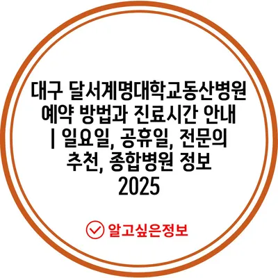 대구 달서계명대학교동산병원 예약 방법과 진료시간 공지 | 일요일, 공휴일, 전연락 추천, 종합병원 정보 2025 에 대해 자주 묻는 질문 TOP 5