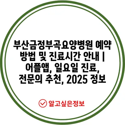 부산금정부곡요양병원 예약 방법 및 진료시간 공지 | 어플앱, 일요일 진료, 전연락 추천, 2025 정보 에 대해 자주 묻는 질문 TOP 5