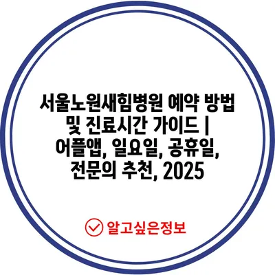서울노원새힘병원 예약 방법 및 진료시간 설명서 | 어플앱, 일요일, 공휴일, 전연락 추천, 2025 에 대해 자주 묻는 질문 TOP 5