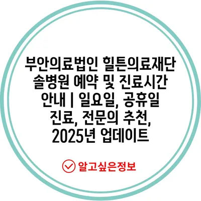 부안의료법인 힐튼의료재단 솔병원 예약 및 진료시간 공지 | 일요일, 공휴일 진료, 전연락 추천, 2025년 업데이트 에 대해 자주 묻는 질문 TOP 5