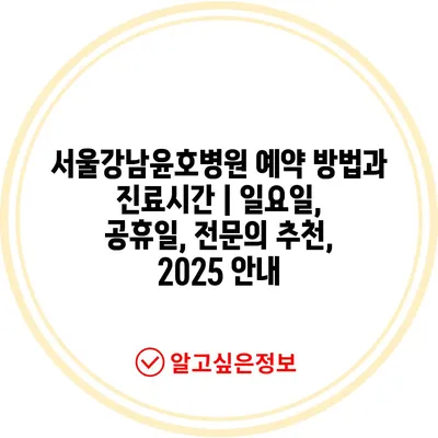 ✅ 서울강남윤호병원의 진료시간과 예약 방법을 지금 바로 알아보세요.