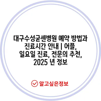 대구수성굳센병원 예약 방법과 진료시간 공지 | 어플, 일요일 진료, 전연락 추천, 2025 년 정보 에 대해 자주 묻는 질문 TOP 5