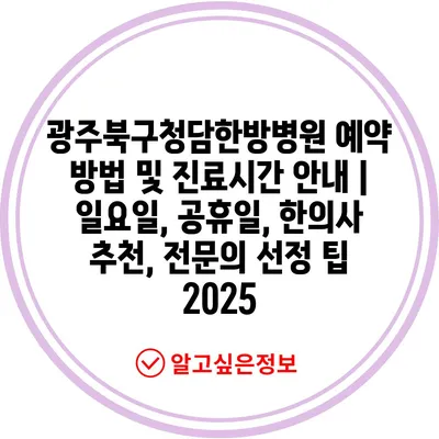 광주북구청담한방병원 예약 방법 및 진료시간 공지 | 일요일, 공휴일, 한의사 추천, 전연락 선정 팁 2025 에 대해 자주 묻는 질문 TOP 5