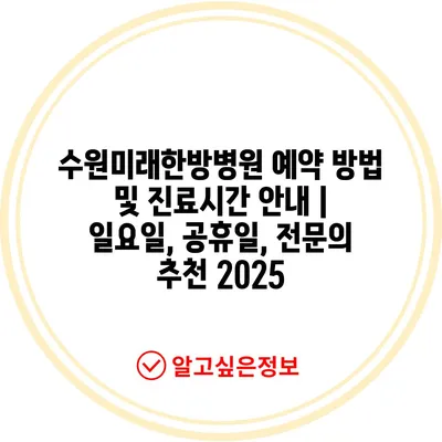 수원미래한방병원 예약 방법 및 진료시간 공지 | 일요일, 공휴일, 전연락 추천 2025 에 대해 자주 묻는 질문 TOP 5