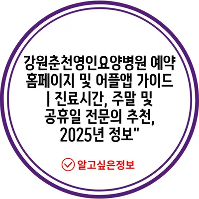 강원춘천영인요양병원 예약 홈페이지 및 어플앱 설명서 | 진료시간, 주말 및 공휴일 전연락 추천, 2025년 정보에 대해 알아보겠습니다.
