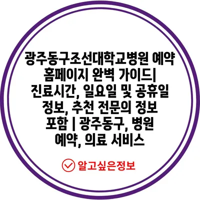광주동구조선대학교병원 예약 홈페이지 완벽 설명서| 진료시간, 일요일 및 공휴일 정보, 추천 전연락 정보 포함 | 광주동구, 병원 예약, 의료 서비스에 대한 내용을 소개합니다.