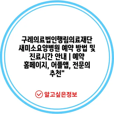구례의료법인행림의료재단 새미소요양병원 예약 방법 및 진료시간 공지 | 예약 홈페이지, 어플앱, 전연락 추천에 대해 자주 묻는 질문 TOP 5