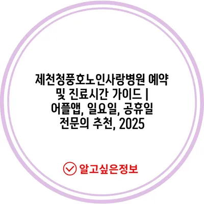 제천청풍호노인사랑병원 예약 및 진료시간 가이드 | 어플앱, 일요일, 공휴일 전문의 추천, 2025