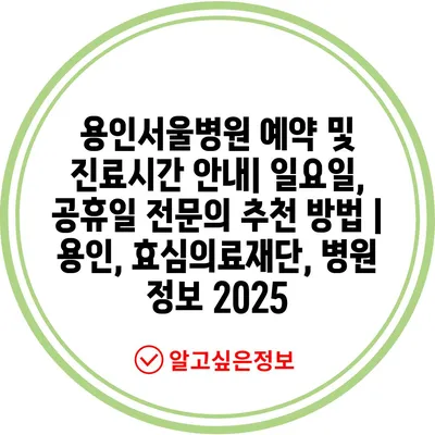용인서울병원 예약 및 진료시간 공지| 일요일, 공휴일 전연락 추천 방법 | 용인, 효심의료재단, 병원 정보 2025 에 대해 자주 묻는 질문 TOP 5