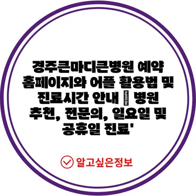 ✅ 경주큰마디큰병원의 진료시간과 예약 방법을 자세히 알아보세요.