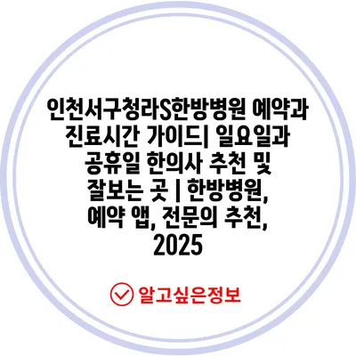 인천서구청라S한방병원 예약과 진료시간 설명서| 일요일과 공휴일 한의사 추천 및 잘보는 곳 | 한방병원, 예약 앱, 전연락 추천, 2025 에 대해 자주 묻는 질문 TOP 5