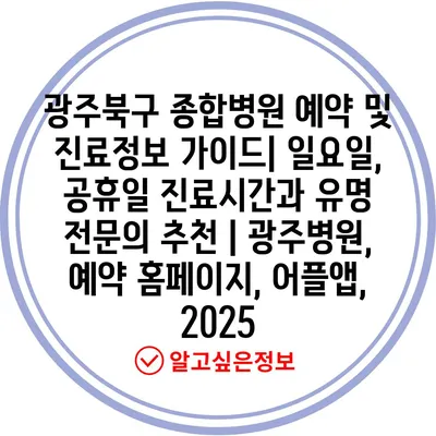 광주북구 종합병원 예약 및 진료정보 설명서| 일요일, 공휴일 진료시간과 유명 전연락 추천 | 광주병원, 예약 홈페이지, 어플앱, 2025 에 대해 자주 묻는 질문 TOP 5