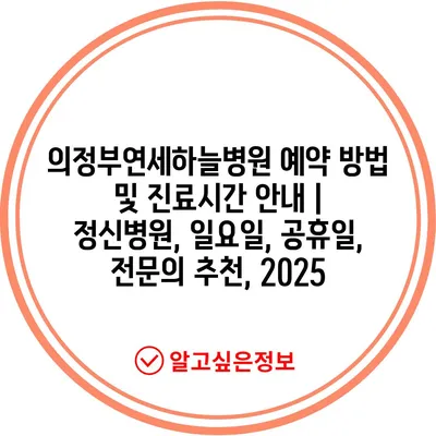 의정부연세하늘병원 예약 방법 및 진료시간 공지 | 정신병원, 일요일, 공휴일, 전연락 추천, 2025 에 대해 자주 묻는 질문 TOP 5