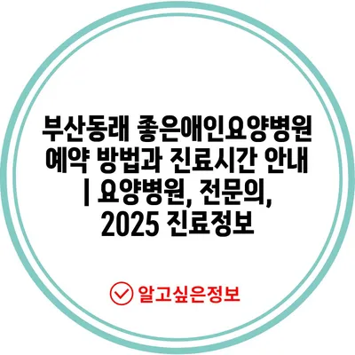 ✅ 부산동래 좋은애인요양병원의 예약 방법을 자세히 알아보세요.