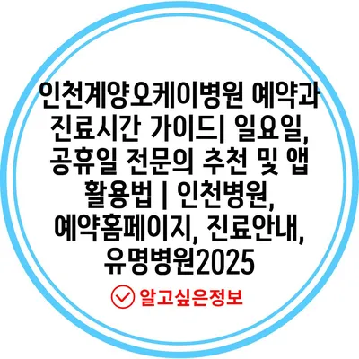 인천계양오케이병원 예약과 진료시간 가이드| 일요일, 공휴일 전문의 추천 및 앱 활용법 | 인천병원, 예약홈페이지, 진료안내, 유명병원2025