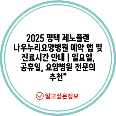 2025 평택 제노플랜 나우누리요양병원 예약 앱 및 진료시간 공지 | 일요일, 공휴일, 요양병원 전연락 추천
