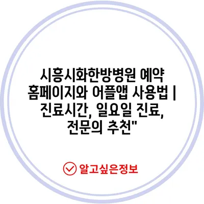 ✅ 시흥시화한방병원의 진료시간과 예약 방법을 알아보세요!