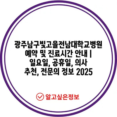 광주남구빛고을전남대학교병원 예약 및 진료시간 공지 | 일요일, 공휴일, 의사 추천, 전연락 정보 2025