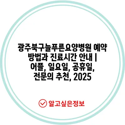 광주북구늘푸른요양병원 예약 방법과 진료시간 공지 | 어플, 일요일, 공휴일, 전연락 추천, 2025 에 대해 자주 묻는 질문 TOP 5