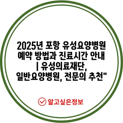 2025년 포항 유성요양병원 예약 방법과 진료시간 공지 | 유성의료재단, 일반요양병원, 전연락 추천에 대해 자주 묻는 질문 TOP 5